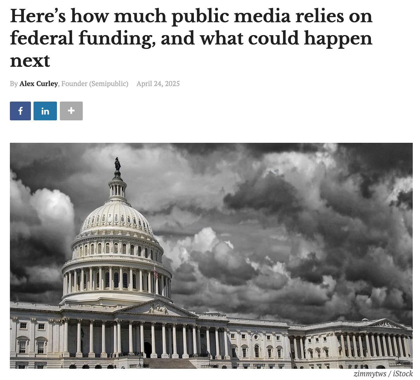 “Here’s how much public media relies on federal funding, and what could happen next” - Current.org