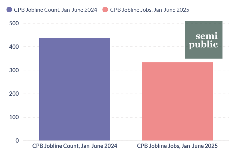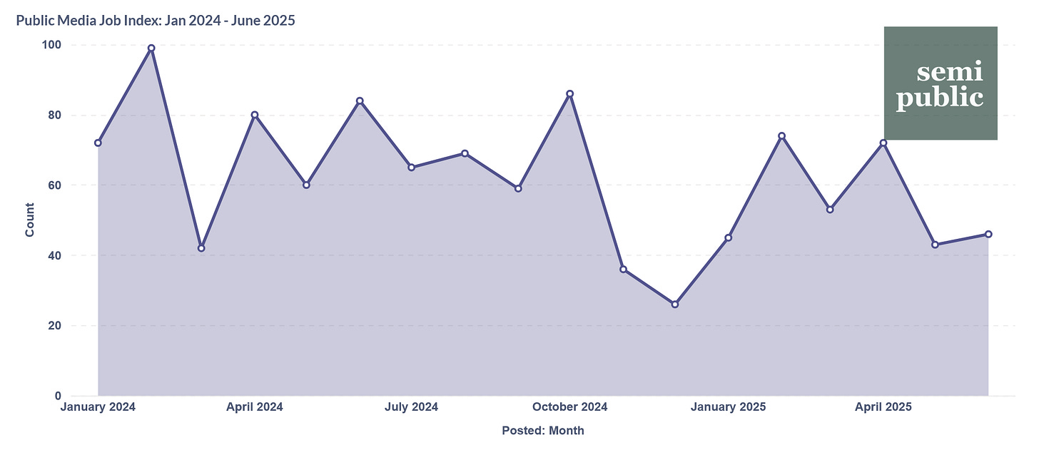 For having an outsized impact on the country as a whole (or at least I think so, anyway), public media is a very tiny job economy: Since the beginning of 2024, the over 580 organizations that make up public media only posted 1,111 job openings, 333 of which were posted in 2025.
