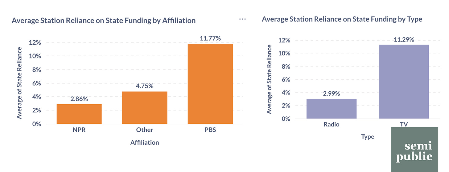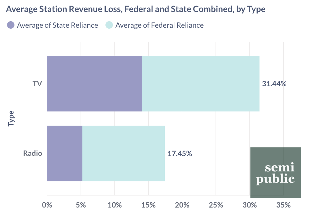 Remember that public television stations are already facing a crisis: While several public radio stations crossed the 50% threshold for reliance on federal funding, public television stations as a whole depended more on that funding on average than their radio counterparts.