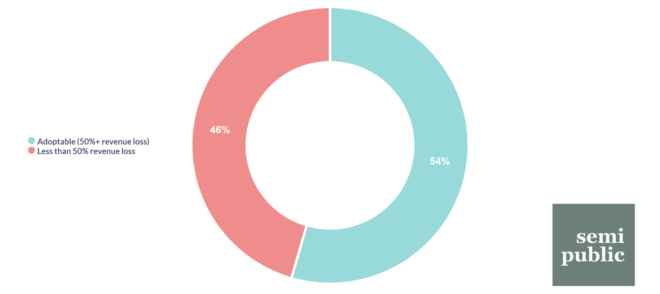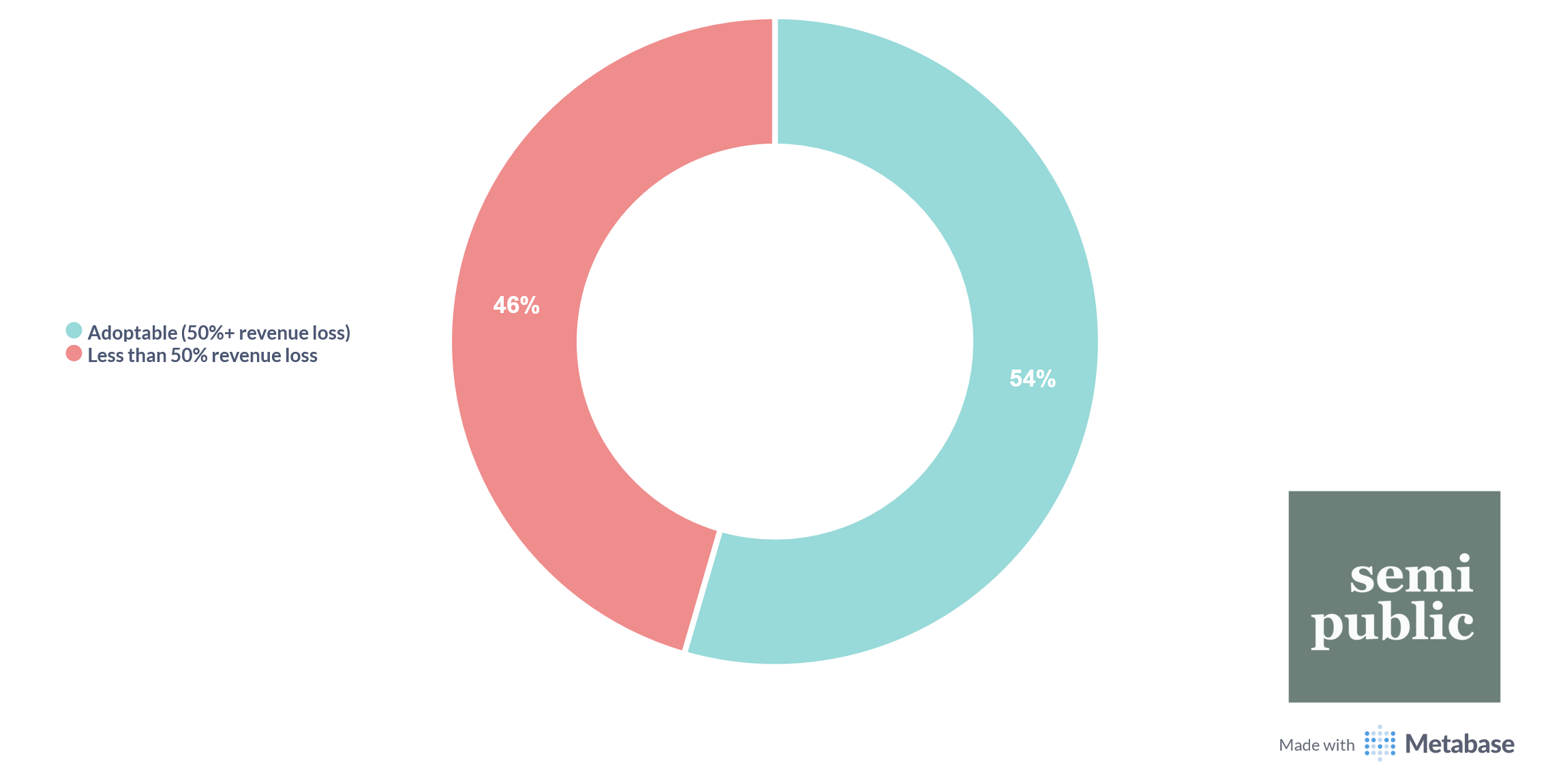 When looking at just the outbound clicks, stations that were listed in the “adoptable section” received 54% of those clicks. That means that 20% of all visitors to Adopt A Station as of August 1st visited the website of a station that stands to lose more than half of their total revenue.